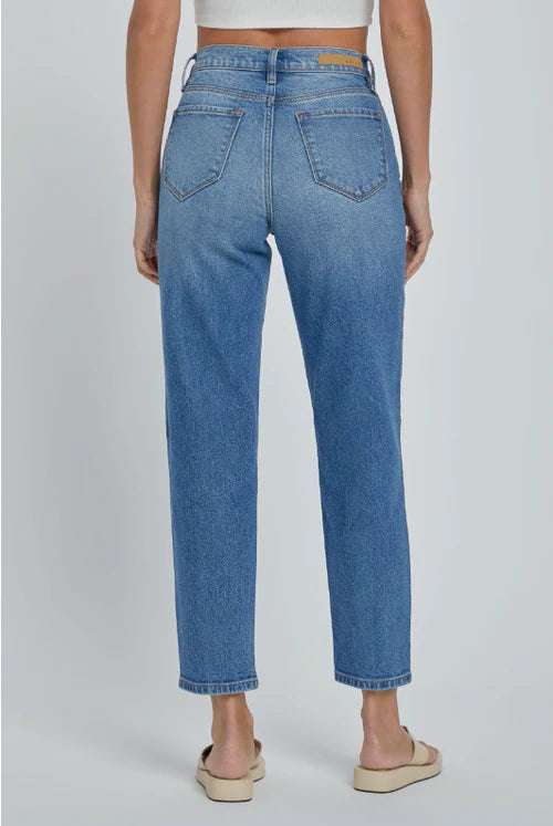 Designed with a flattering high-rise cut, these jeans accentuate your waist and provide a balanced, elongated silhouette. They're all about comfort and relaxed fit, perfect for those who appreciate the fusion of casual and chic.The High Rise Mom Jean is a tribute to the quintessential '90s style. Its slightly relaxed fit through the hip and thigh offers room to move, while the ankle-length cut adds a modern touch. These jeans perfectly blend the relaxed silhouette of classic mom jeans with the edgy appeal of ankle-length styles.Crafted for all-day comfort, these jeans are suitable for everything from casual outings to smart-casual events. Pair them with a simple tucked-in blouse for a classic, understated look or team them with a chic crop top for an edgier vibe.