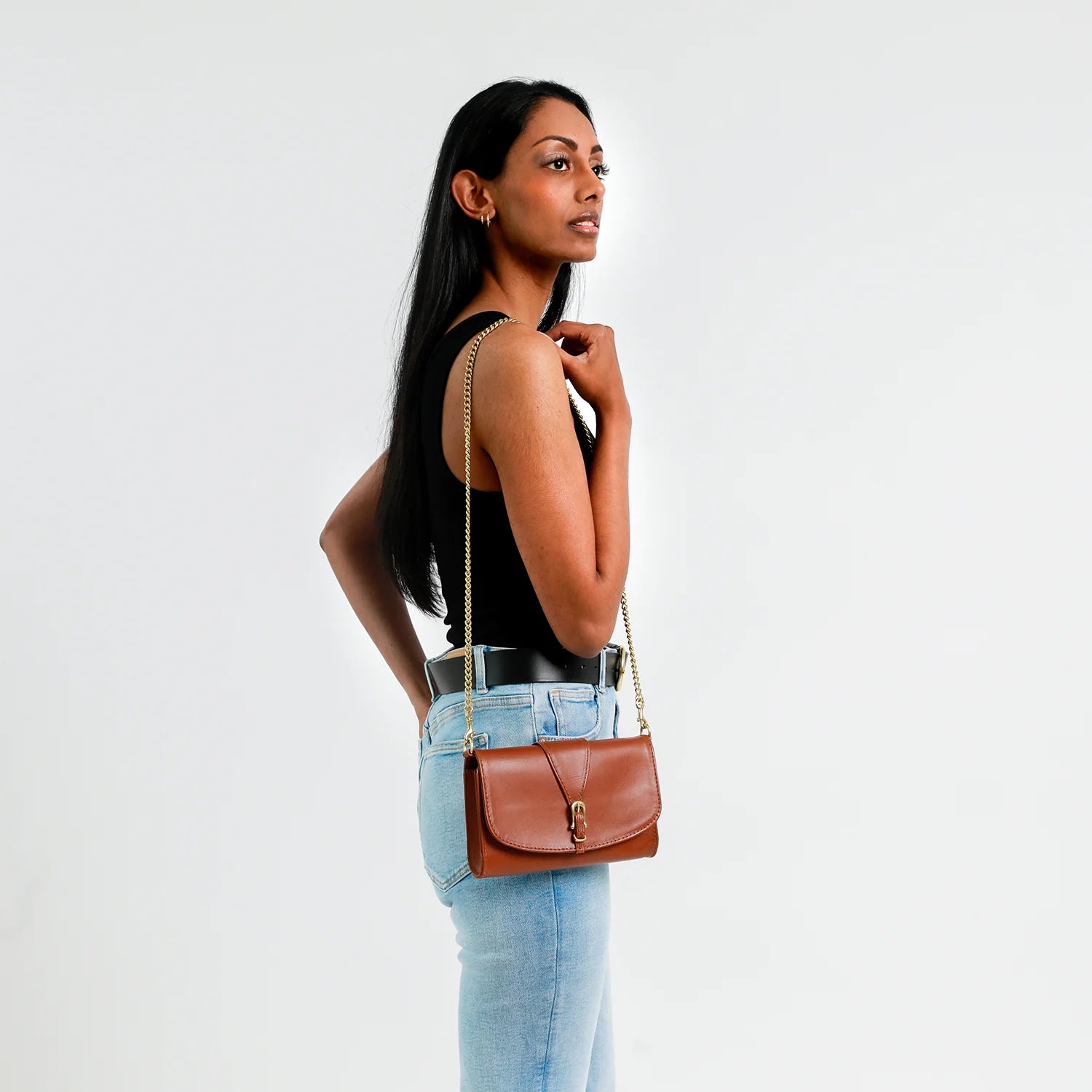 A brass chain strap you can wear short, medium, or long! The choice is yours.